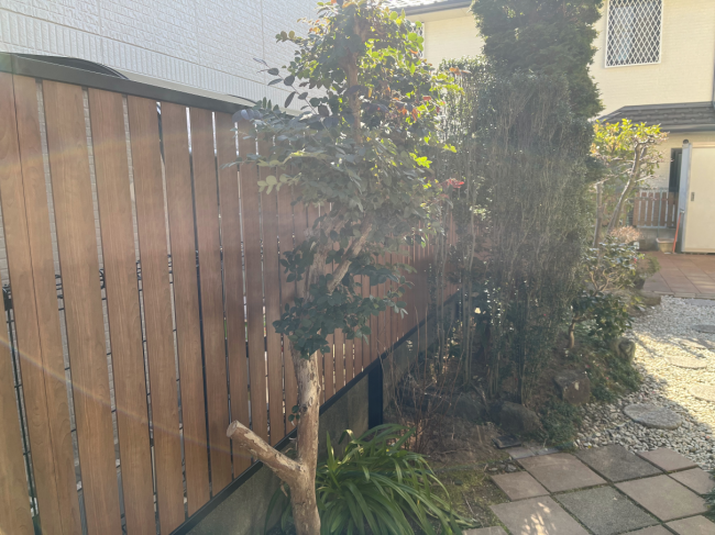 以前の木製フェンスより高さをあげて、リビングからの眺めを目隠しすることしました。
